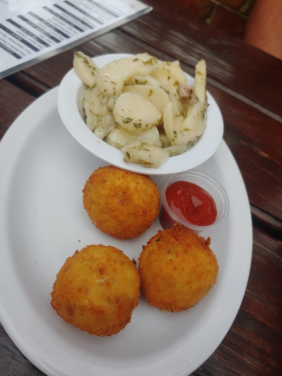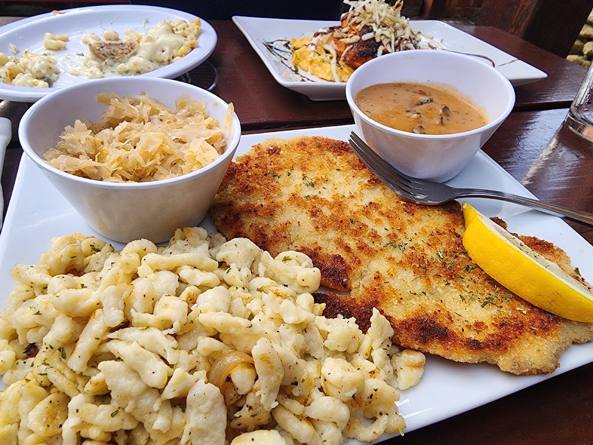 The food at Hans & Franz Biergarten is a standout, offering a creative take on German comfort food. You’ll find classics like bratwurst, schnitzels, and pretzels, all prepared with a level of care that’s often hard to find in a casual setting. One of the crowd favorites is their pretzel basket-served warm and fresh with a variety of dipping sauces, it’s a perfect snack to pair with any of the beers on tap. For those looking for a heartier option, the schnitzels are a must-try. They’re crispy on the outside and juicy on the inside, served with mashed potatoes and a side of tangy sauerkraut that adds a perfect balance to the rich flavors.